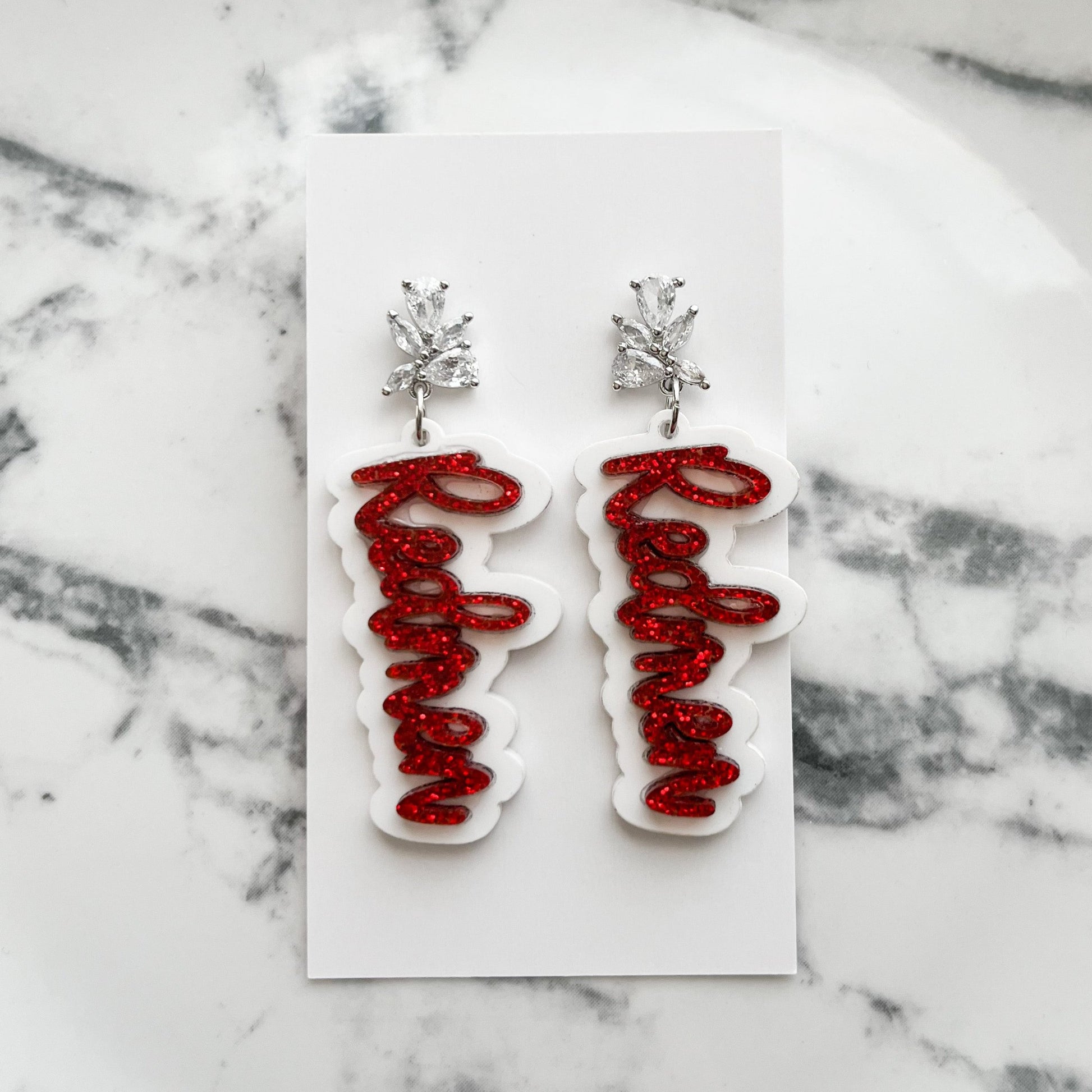 Cubic Zirconia Glitter Redmen Script Earrings