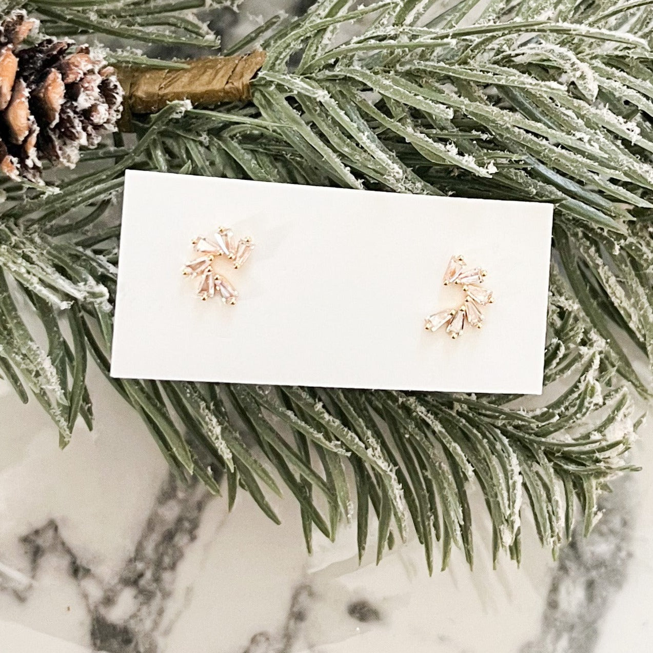 Cubic Zirconia Half Circle Stud Earrings