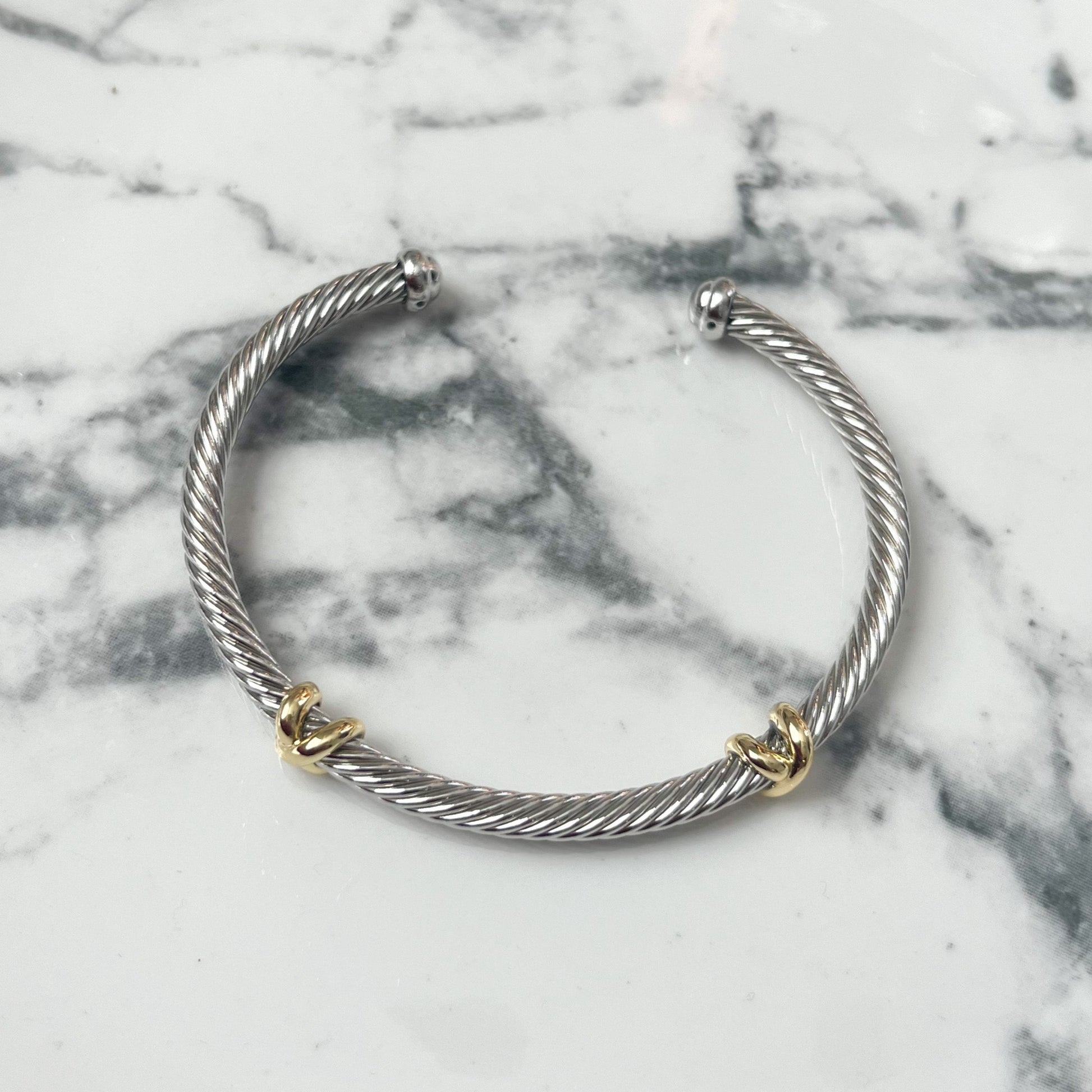Double Crossed Silver and Gold Designer Inspired Bracelet