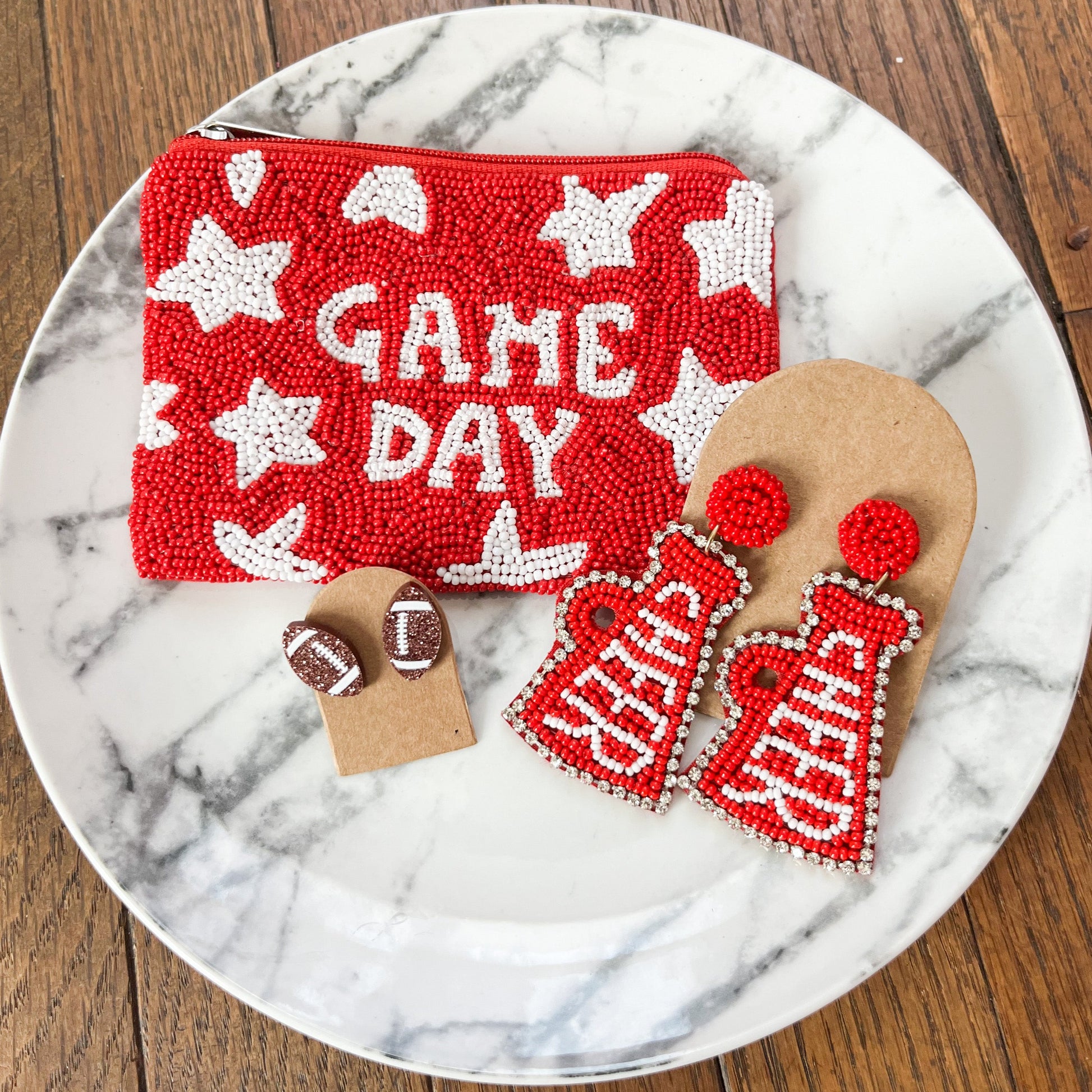 Rhinestone Cheer Seed Bead Statement Earrings